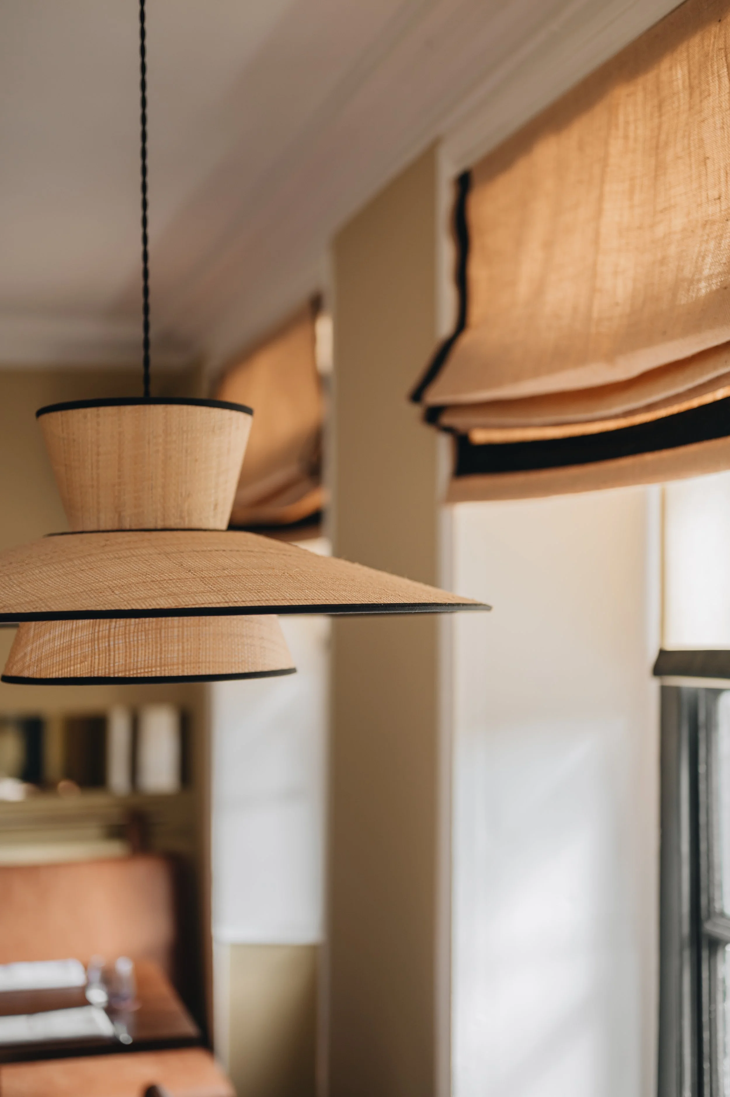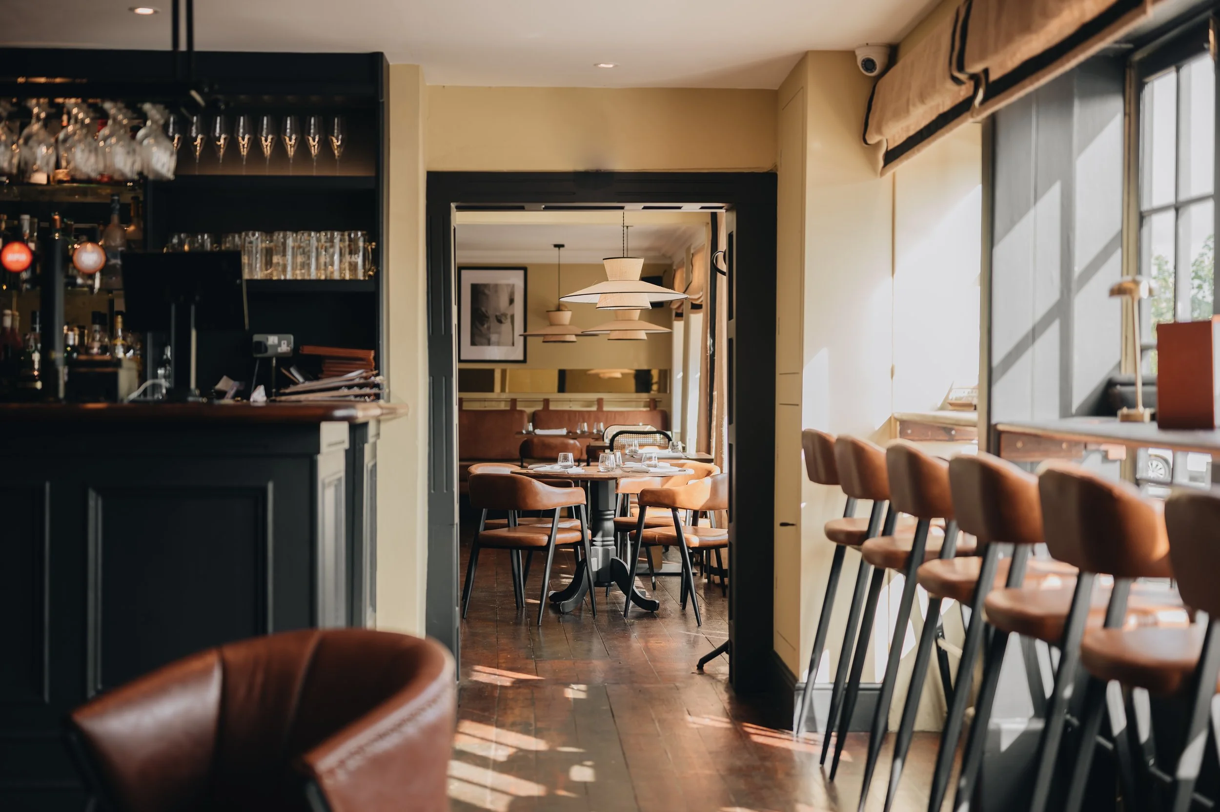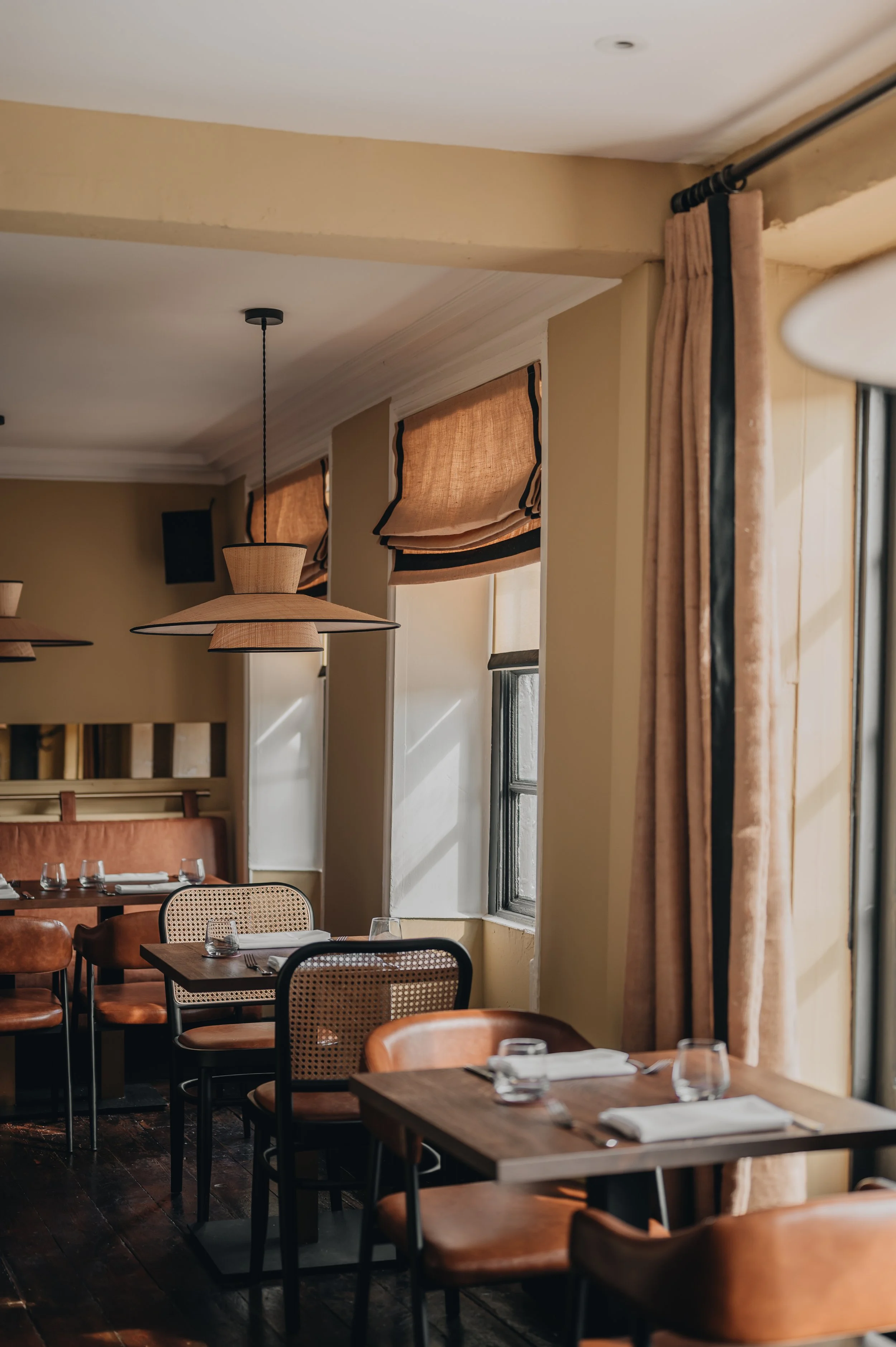 Using natural materials in a creative and interesting way, blending a subtle colour palette and bespoke lighting we have created a relaxing venue which works for both daytime and evening dining